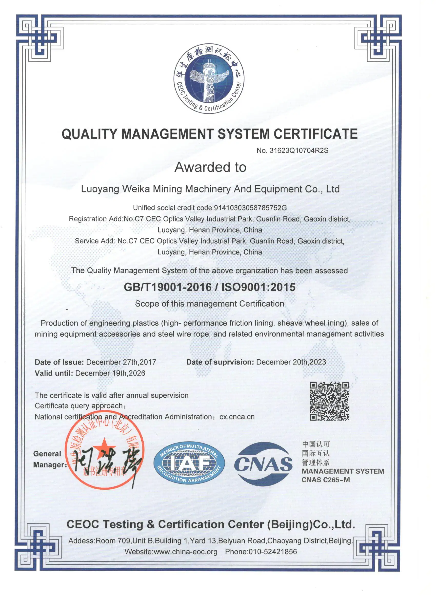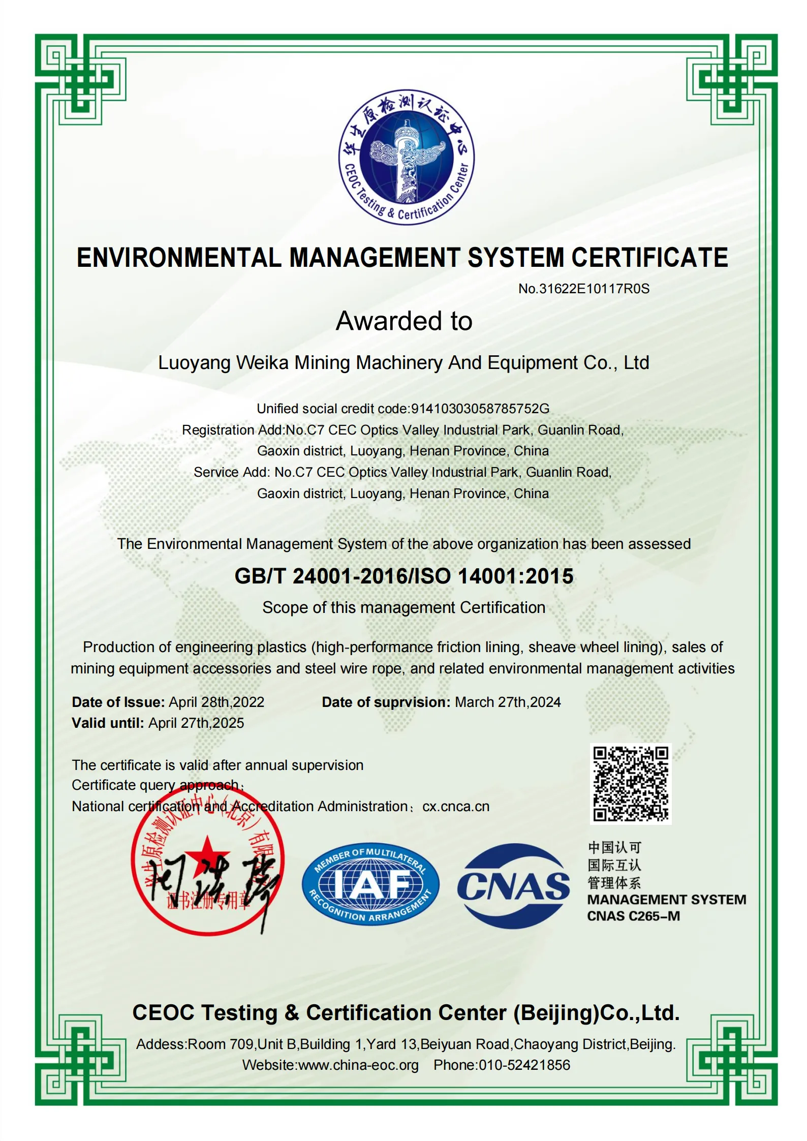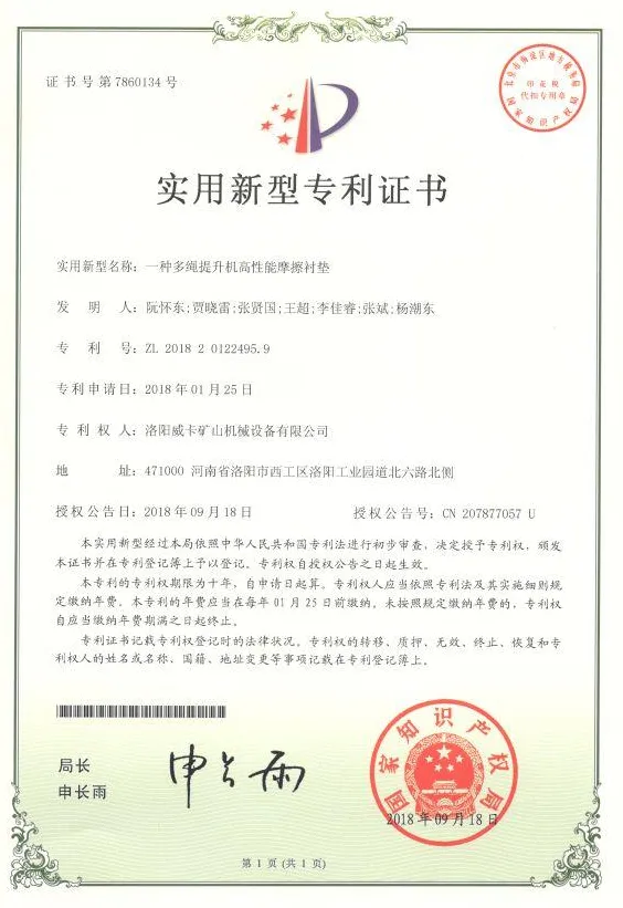 Welcome to Luoyang Weika Mining Machinery Equipment Co., LTD,which is a technology enterprise mainly engaged in the production of engineering plastics such as friction liner and head sheave liner block for mine, integrating research and development, production and sales,and distributing original imported products such as liner and mining steel wire rope. We regards the honesty as foundation, committed to providing customers with quality products and services. Luoyang Weika is looking forward to cooperating with you!